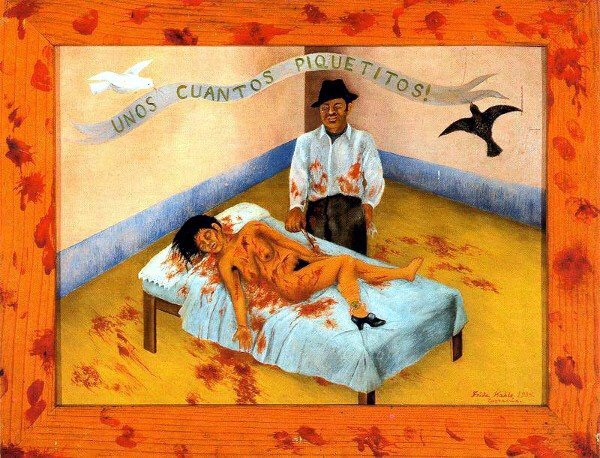 La Kahlo rimase molto colpita dalla vicenda di un uomo che al processo per l’uccisione della moglie si giustifico dicendo che erano stati “Unos cuantos piquetitos“, ovvero solo qualche piccola pugnalata.